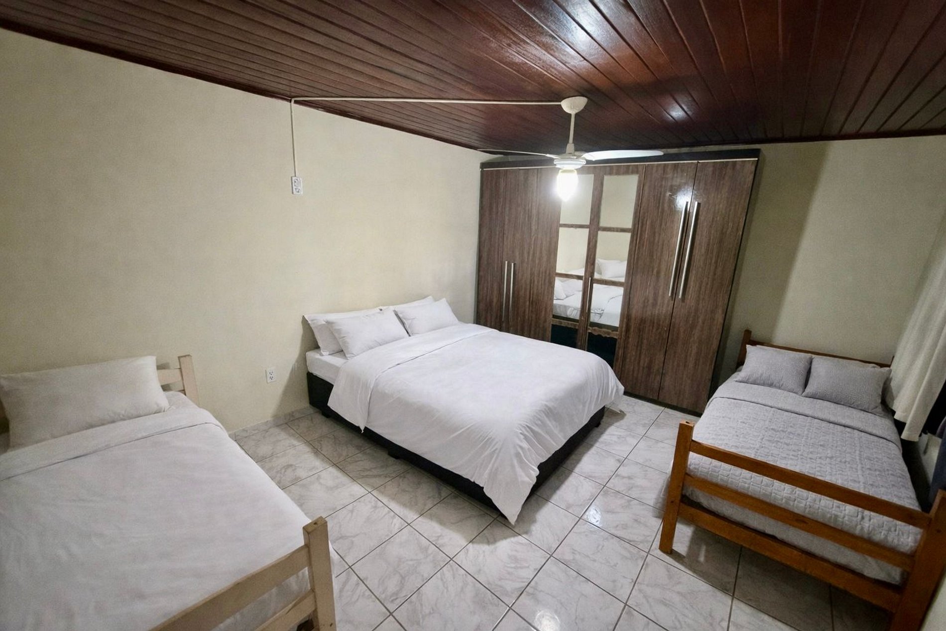 A casa acomoda confortavelmente 17 pessoas em camas. Para hóspedes adicionais, a acomodação será em colchões. São 4 quartos, sendo duas suítes, uma com ar condicionado e mais um banheiro social. Possui duas áreas de estar, cada uma com duas camas de solteiro e um sofá-cama.