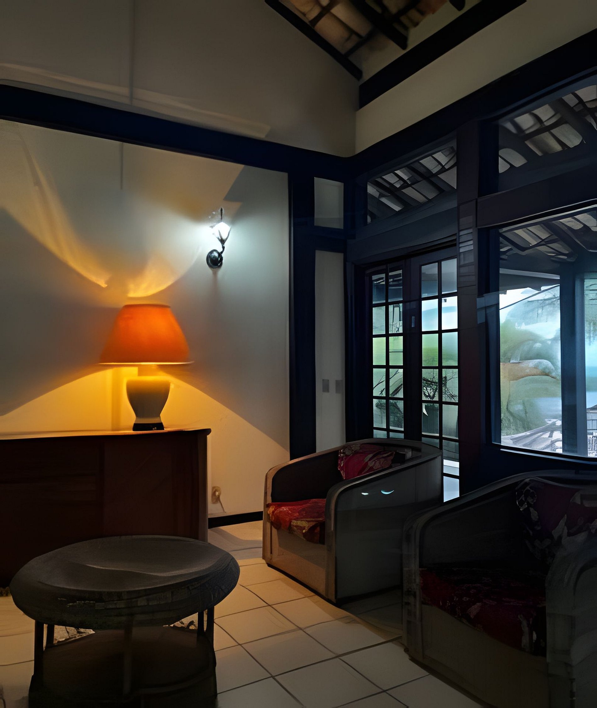 Área de estar com sofá/cadeira